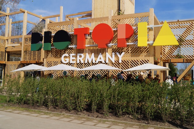 Eines der Highlights ist nebenbei der deutsche Pavillon, der ein vielfältiges Mitmachprogramm rund um Naturschutz und regenerative Energiegewinnung bietet.